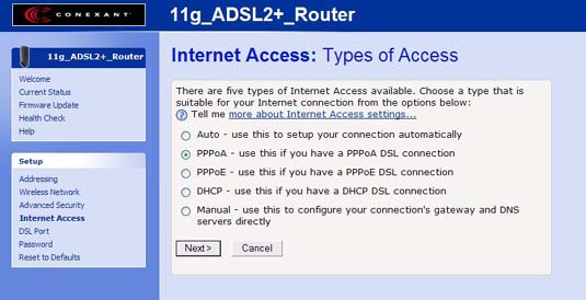 Seleccionamos PPPoA y pulsamos en Next, nos mostrará esta nueva pantalla:
