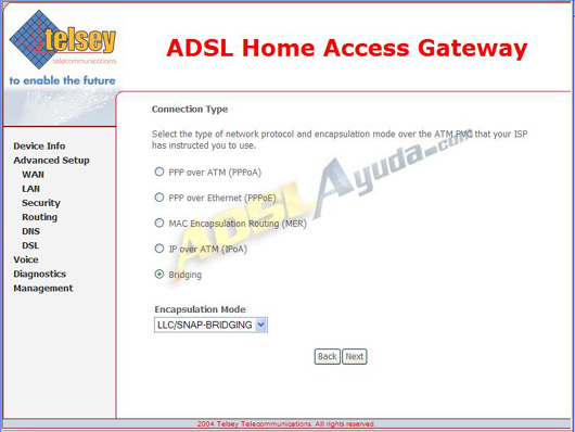 - VPI: 8, VCI: 32. Pulsamos en la tecla Next.