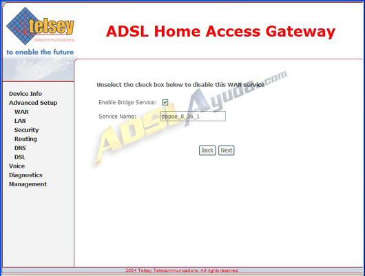En el siguiente paso simplemente dejamos marcada la casilla Enable Bridge Service.