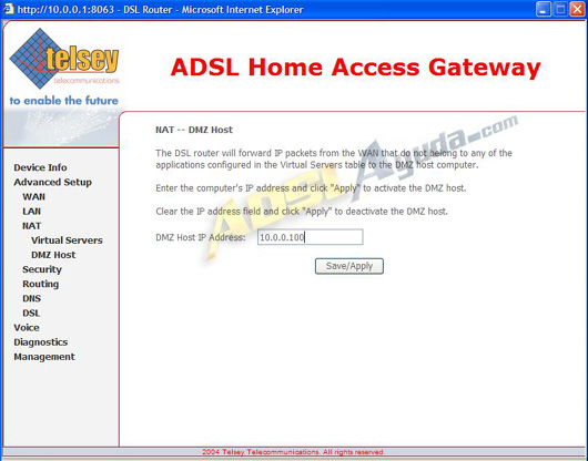 En la casilla DMZ Host IP Address introduciremos la IP del ordenador al que queramos abrir todos los puertos. Para terminar pulsamos en el botón Save/Apply.