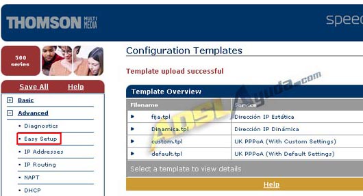 Una vez tengamos el firmware actualizado accederemos al router e iremos al menú Advanced, opción Templates y le indicaremos la ubicación del fichero .tpl que vayamos a usar según nuestro proveedor de Internet.
