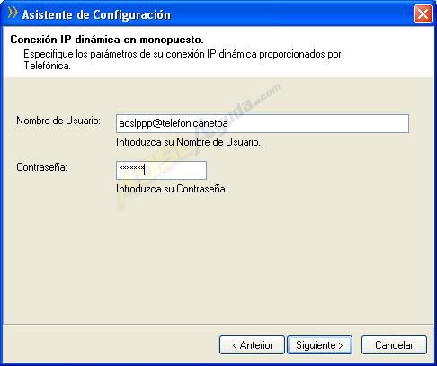 Usuario: adslppp@telefonicanetpa. Contraseña: adslppp