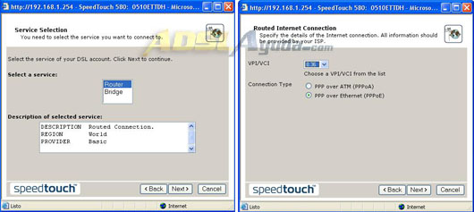 Elegimos Router o Bridge, la configuración de VPI/VCI que nos interese y si nuestra conexión es PPPoE o PPPoA. Vamos pulsando en Next a medida que elegimos opciones. Introduciremos las contraseñas de nuestro proveedor y las que queramos para el router.