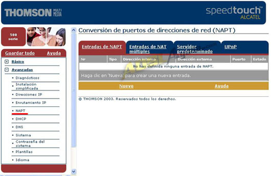 ABRIR PUERTOS EN EL ROUTER THOMSON / ALCATEL SPEED TOUCH 580 (NAVEGADOR)