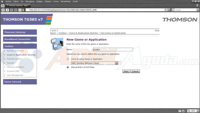 Para abrir puertos a través del navegador serán los siguientes pasos: