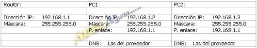 A apartir de aquí, podremos ir añadiendo PCs hasta el límite que permita el punto de acceso o router, según el proceso anterior. Si usamos el servidor DHCP del aparato, él mismo se encargará de gestionar las IPs de cada PC añadido. En el caso de que queramos que la configuración sea manual, tendremos que ir configurando las propiedades del TCP/IP de la tarjeta de red de cada PC individualmente, según la tabla (a modo de ejemplo):