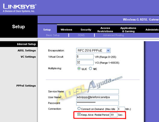 Queda un último detalle. El router viene por defecto configurado de tal manera que tras un tiempo de inactividad se desconecta de Internet. Si pretendemos que sea accesible durante todo el tiempo, hay que modificar ese valor. Iremos al menú Setup, y en el apartado Connection, seleccionaremos la opción Keep Alive. De esta manera nunca desconectará la línea.