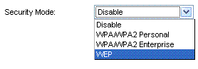 Una vez dentro pincharemos sobre Wirelless y despues sobre Wireless Security para asi llegar a una pantalla como esta :