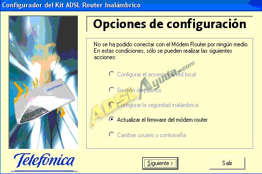 Siguiente mensaje: Actualizar firmware del router. (Pulsar siguiente)