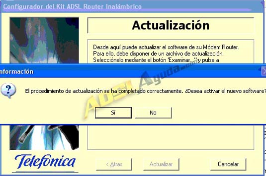 Cuarto mensaje: El procedimiento de actualización se ha completado correctamente. ¿Desea activar el nuevo software?. Pulsamos sí