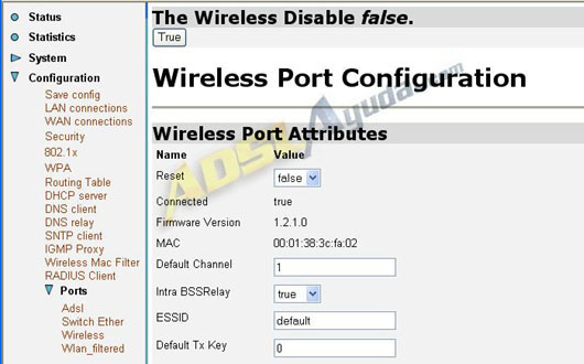 Esto lo haremos en el menú Configuration, Ports, Wireless.