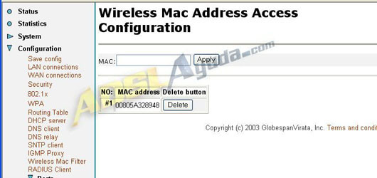 Ahora iremos introduciendo las direcciones MAC de los ordenadores de nuestra red pulsando en Apply. Las direcciones deben introducirse sin ninguna puntuación entre los caracteres.