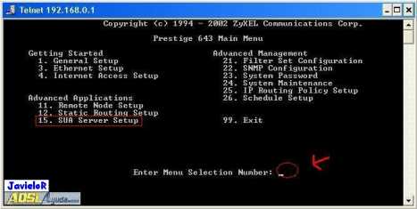 Explicaré como mapear los puertos de nuestro Zyxel prestige 643 en TELNET. (Asegurarse primero de estar en MULTI-PUESTO, porque de lo contrario, es una tonteria mapearlos, ya que en MONOpuesto estan todos mapeados).