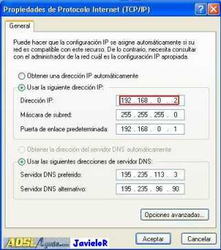Acceder a las propiedades del protocolo TCP/IP de la tarjeta de RED (Ethernet) que estáis usando.