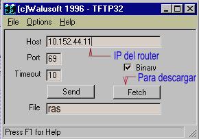 1.- Hacerse con un programa TFTP. Os podéis descargar este desde aquí : http://www.ncat.co.uk/download/tftp32.zip (funciona con W98Se y XP).