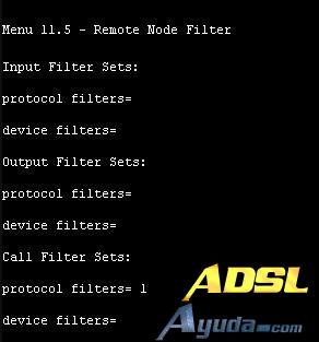 Aplique el fijado filtro ‘NetBIOS_WAN’ al ‘Protocol Filter’ de ‘Call Filter Sets=’ en remote node setup 11.5 para tomar activo. Usted puede entrar al menú 11.5 seleccionando ‘Edit Filter Sets=’ en el menú 11.1 ‘Yes’.