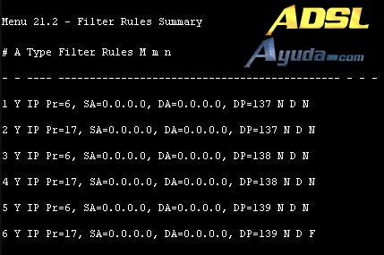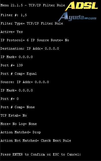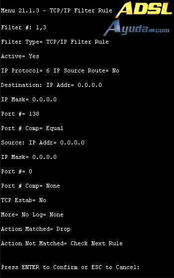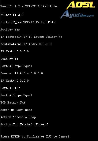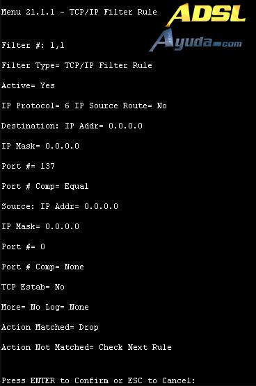 Aplique por favor este segundo filtro fijado ‘NetBIOS_LAN’ en el ‘protocol filters=’ del ‘Input Filter Sets:’ en el menú 3 para bloquear los paquetes desde LAN.