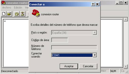 Aquí seleccionaremos el puerto donde tengamos conectado el router (el mas superior es el com1 y el mas inferior el com2)