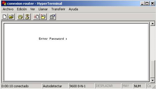 Iremos a Inicio -> Programas -> Accesorios -> Comunicaciones -> Hyperterminal