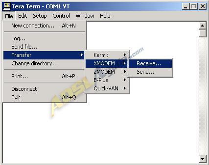 Starting XMODEM download… <—Respuesta del router, ahora darle en el Tera Term a xmodem receive y elegir donde lo queréis guardar (y el nombre)