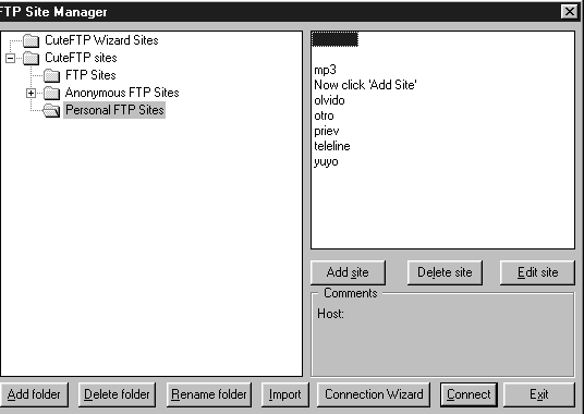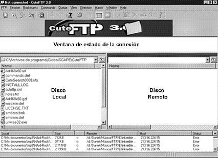 Con estas nociones básicas ya podemos usar el CuteFTP, aunque eso es sólo una parte de las multiples posibilidades que ofrece el programa. Incorpora un buscador de ficheros MP3 asi como utilidades de conexion y desconexión automática.