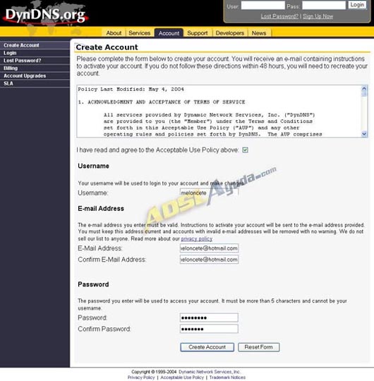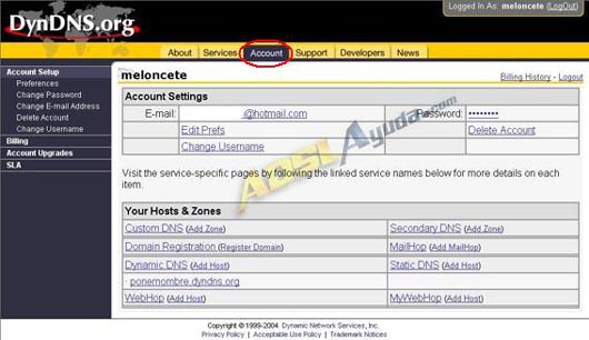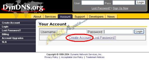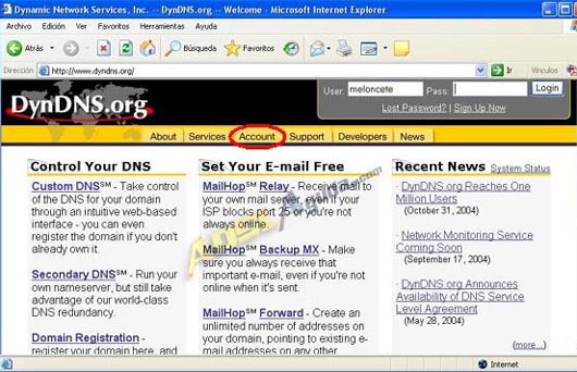 Entraremos en www.dyndns.org y nos dirigiremos al apartado Account.