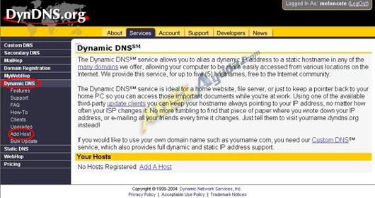 Una vez iniciada, pulsaremos en el apartado Dynamic DNS y a continuación en Add Host.