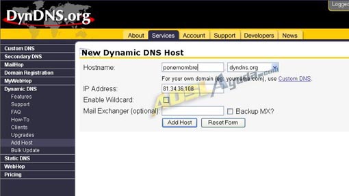 Si tenemos un servidor web instalado en el ordenador será accesible en la direcciónhttp://ponernombre.dyndns.org.
