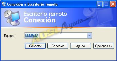 Una vez dispongamos en nuestro ordenador del software cliente, para ejecutarlo tendremos que buscarlo en Inicio, Programas, Accesorios, Comunicaciones, Conexión a escritorio remoto. Aparecerá el cuadro de diálogo de conexión.