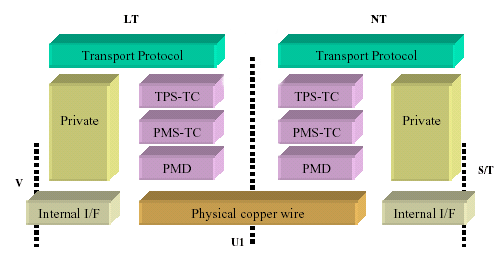 La Figura 19 muestra el modelo de referencia funcional de VDSL según ETSI.